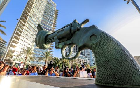 今已成為和平象徵的一座槍管打結雕塑作品,在週二「國際非暴力日」揭幕於黎巴嫩首都貝魯特。雕塑座落於一棟高樓附近,建築正面碎裂的外牆喚起曾一度撕裂這個城市的內戰記憶。國際非暴力日落在每年的十月二日,以紀念印度聖雄甘地的生日,因他採取非暴力的公民不服從手段,帶領印度走向獨立。