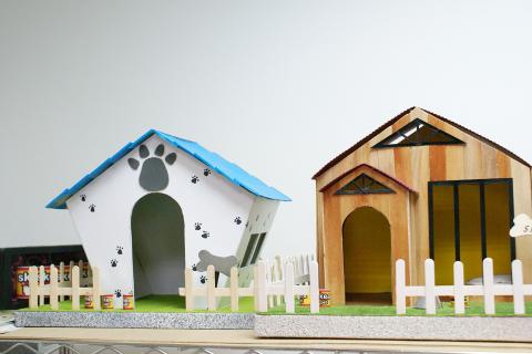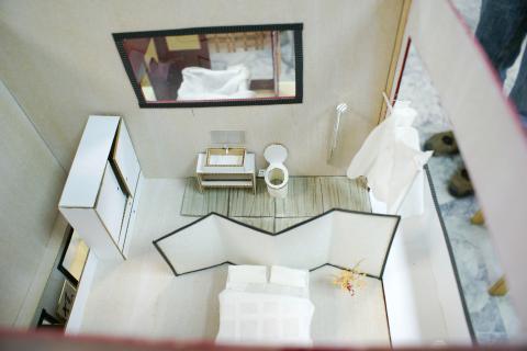 Across the street at Tseng’s second workshop, younger staff assemble more refined houses. Considerably smaller than the traditional houses (NT$25,000), these are two and three-story mansions (NT$55,000) as well as a Japanese-style bungalow (NT$20,000). These houses take between seven and 10 days to complete. There are no bamboo frames supporting these houses. Instead, the interior of each resembles that of a suburban North American home. Each room is meticulously designed and crafted. Some, for example, have a sofa in front of a fireplace, a canopy bed in the master bedroom or a kitchen complete with refrigerator and stove.