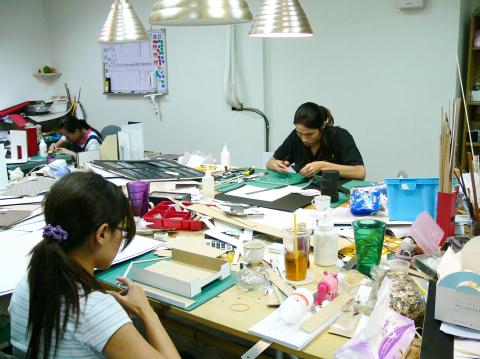 Tseng oversees a staff of six employees at two different workshops on a narrow street in eastern Taipei. In the older of the two workshops, three craftspeople build traditional paper houses using long strips of bamboo for the structure and large pieces of paper with different patterns that can be found at any temple in Taiwan.