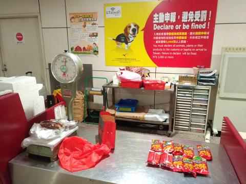Preserved pork and sausages are meat products often imported illegally by passengers. The bureau’s section chief Peng Ming-hsing points out: “In the past, once we caught passengers carrying in such items, we usually advised them and discarded the items without actually fining the passengers, which might have given the impression that these items were allowed to be imported.”