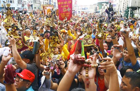 Hundreds of thousands of Filipinos joined an annual procession in Manila, the Philippine capital, to kiss or touch a centuries-old black wooden statue of Jesus Christ, believed to have miraculous healing powers, in a grand display of Catholic devotion on Wednesday.
