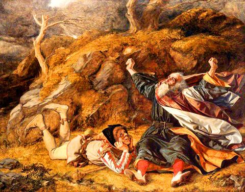 In William Shakespeare’s tragedy King Lear, Edgar, the Duke of Gloucester’s legitimate son, fatally wounds his half-brother Edmund, the duke’s scheming illegitimate son. As Edmund lies dying, the brothers speak of destiny and divine justice. Edgar talks of how the duke himself had been blinded as divine punishment for the adulterous lust that led to Edmund’s birth. Edmund agrees, saying “Th’ hast spoken right, ‘tis true. The wheel is come full circle, I am here.” The “wheel” refers to the “wheel of destiny.” When Edmund says “I am here,” he means that the wheel of destiny has completed its circuit.