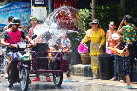 每年四月十三日到十五日是泰國的傳統新年(Songkran),又音譯為「宋干節」,其中一個習俗就是民眾相互潑水或噴水,以期除舊布新。