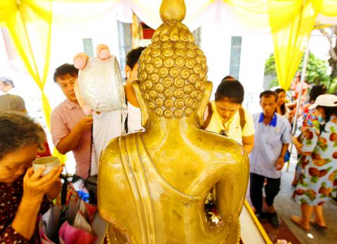 不過宋干節可不是只有狂潑水而已。泰國人傳統上會在這幾天到佛寺裡奉獻金錢或物品給寺方或僧侶,僧侶們再以聖水灑向民眾,象徵祝福之意,民眾也會以水淋佛像,稱為「浴佛」。此外,泰國人也會把水輕灑在家族長輩手中,象徵尊敬並獲得長輩的祝福。