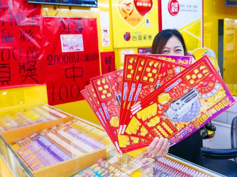 During a question and answer session of the Legislative Yuan’s Finance Committee in early April, Shih said that although last year Taiwan Lottery scratchcards sold like hot cakes during the Lunar New Year break, due to the 20 percent tax levy, a member of the public who wins a NT$2,000 prize actually only receives NT$1,600. He gave the example of someone who spends NT$4,000 to purchase two NT$2,000 Taiwan Lottery tickets: one of the tickets wins a NT$5,000 prize, but after income tax is deducted at 20 percent — leaving NT$4,000 — and a further NT$20 of stamp duty is paid, the person is actually out of pocket by NT$20.