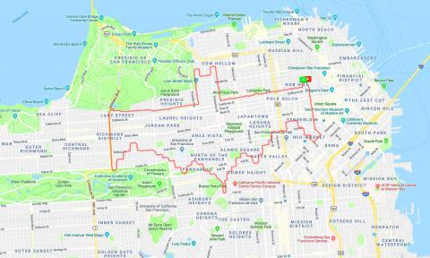慢跑路線的設計需要精心規劃,尤其是在像舊金山這樣的城市──你跑步必須找安全、風景宜人的地方,且要避開人潮,還得決定要爬多少坡。舊金山一位跑者卻讓慢跑路線的規畫變得更加複雜──但成果非常漂亮。