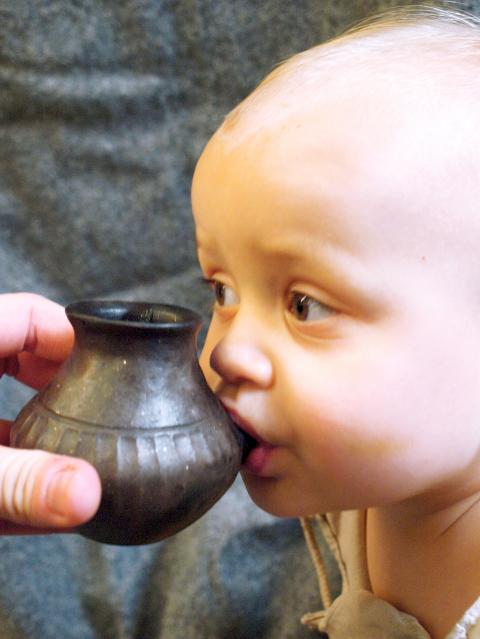 這些物件小到能夠放進嬰兒的小手中,是用來盛裝奶水的容器,瓶身上附有一個狹長的壺嘴,讓小寶寶能夠從中吸吮液體。雖然研究檢驗用的三個物件外觀稍嫌平淡無奇,但其他同類陶器形狀卻相當生動,有著動物的頭,附著長長的耳朵或是犄角,以及像人類的腳。
