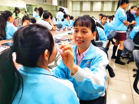 Yuan’s children are now grown up, and both are now happily employed. Three years ago, under the encouragement of her children, Yuan enrolled at Hsinchu Kuangfu High School’s Department of Further Education Beauty Treatment Class. In each of the six semesters at the school, Yuan came top of her class and was also selected as the winner of an art and literature essay competition, came third in the school’s public speaking contest and received second prize in a hairdressing competition. While at school, Yuan also obtained a level-three hairdressing license.