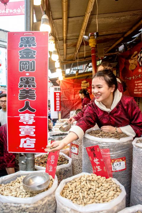 Every year, in the two-week run up to the Lunar New Year break, businesses along Taipei’s Dihua Street hold a special Lunar New Year specialties market.