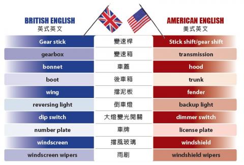 在「美式英文與英式英文」的最後一個單元,我們要介紹一組詞彙:汽車零件。這些詞彙是在美國脫離英國獨立後演變而來的,因此有許多差異。