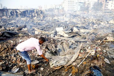 孟加拉首都達卡的一處貧民窟,本週三慘遭大火肆虐,導致數千人無家可歸。據目擊者指出,有數百間簡陋的小屋,在這場發生於該城米爾布爾地區魯普納加的大火中均被燒毀。