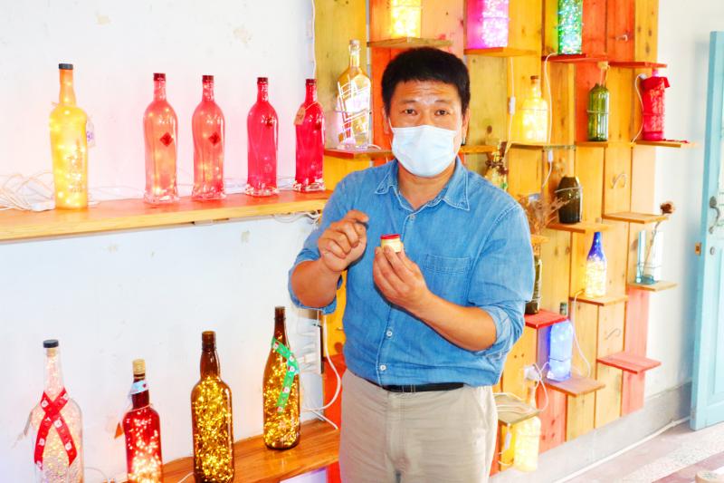 According to Lin, he came up with the idea of using discarded glass liquor bottles to make artistic fairy light lamps after returning to live in Yilan from Taipei. Lin says he noticed that Toucheng’s coastline was covered in trash and wanted to find a way to re-use the waste. Following a long and arduous period of research and development, Lin claims he came up with a novel way to make the lamps without the need for batteries by developing a method for drilling a hole in the sides of the bottles to allow the flex to pass through and connect the lamps to mains electricity. Lin says he hoped his invention would not only help promote an eco-friendly ethos, but would also provide him with a modest income so that he could continue inventing.