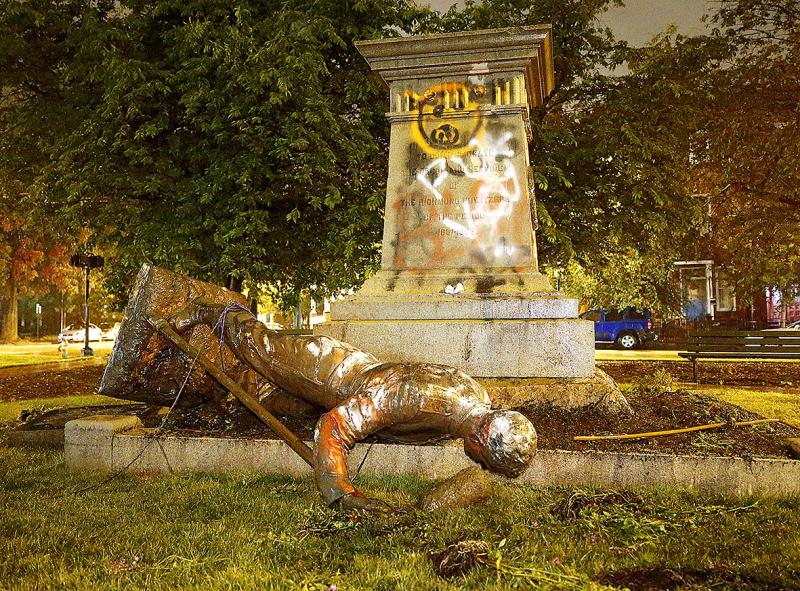 在過去的南方聯盟首府維吉尼亞州里奇蒙市,抗議人士於六月十日晚間推倒了一座有百年歷史的南方聯盟總統杰佛遜‧戴維斯雕像。
