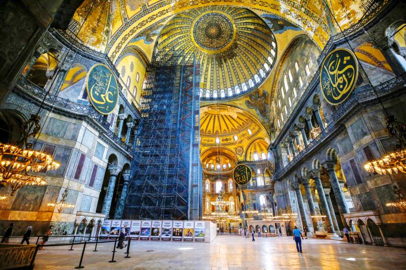 希臘文「Hagia Sophia」(聖索菲亞)意為「神聖智慧」,由拜占庭帝國〔即東羅馬帝國〕查士丁尼大帝所建,於西元五三七年竣工。