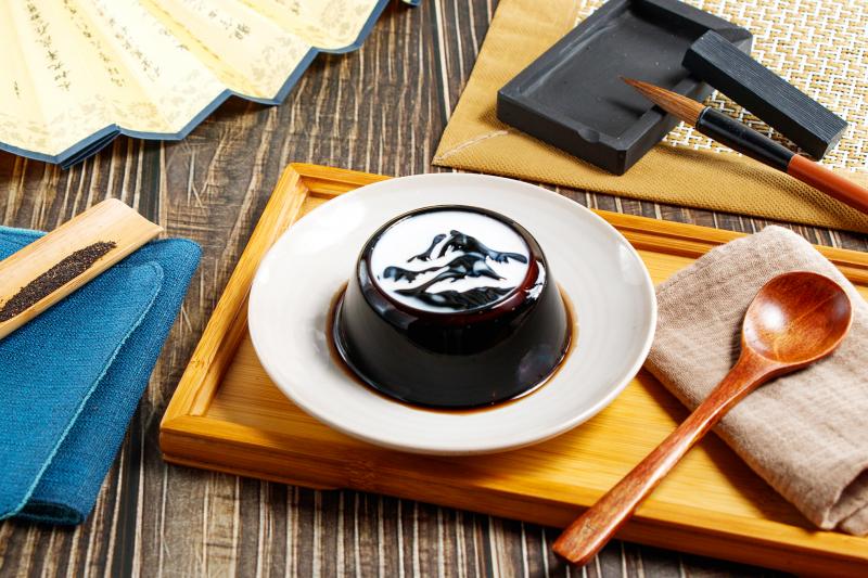 This summer, the traditional treat has been given an artistic, dreamy new look with the National Palace Museum’s (NPM) “Ink-painting Jelly,” a collaboration with the Taiwanese company BlackBall Grass Jelly. When cream is poured over the jelly, a mountain design imprinted on the top of the black jelly emerges, forming a mountain scene with misty clouds swirling around the peaks, a classic theme for traditional East Asian ink paintings.