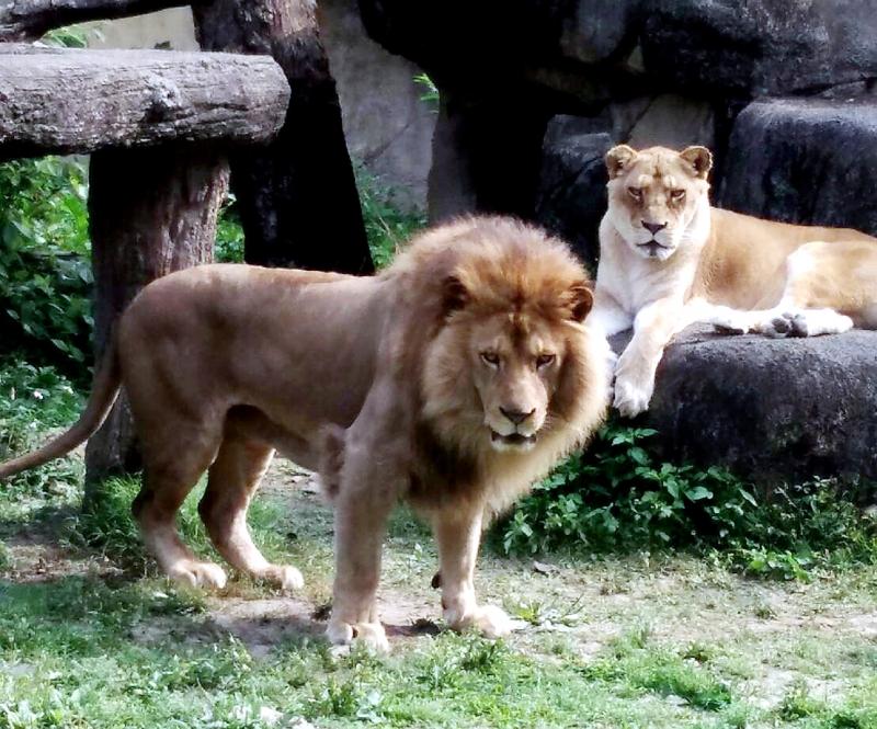 B: 別擔心,我們跟獅子之間隔著一片厚玻璃。而且,被豢養的動物一段時間後一定會變溫馴,並且失去牠們的狩獵本能。