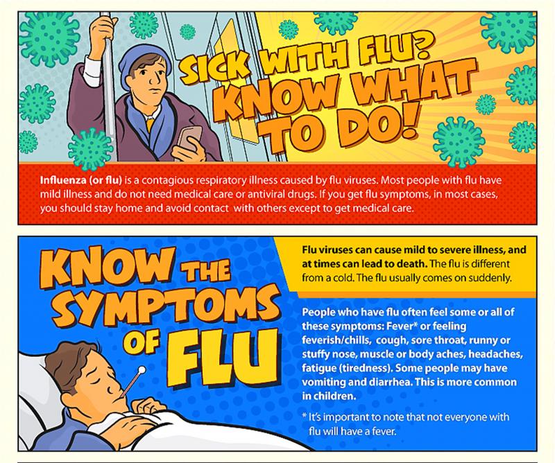 台灣疾病管制署說明,感冒以呼吸道症狀為主,如喉嚨痛、打噴嚏、流鼻水等症狀,偶爾伴隨發燒。而流感的症狀是全身性的,不但發燒、疲倦和咳嗽症狀比感冒更嚴重,有部分感染者會伴隨噁心、嘔吐以及腹瀉等腸胃道症狀,也常出現肌肉無力和頭痛等症狀,嚴重者還會引起腦炎和心肌炎等併發症。