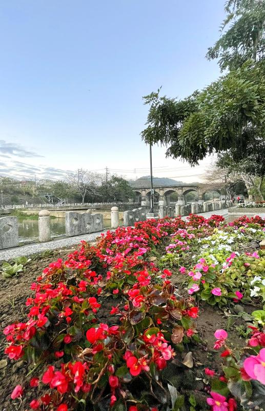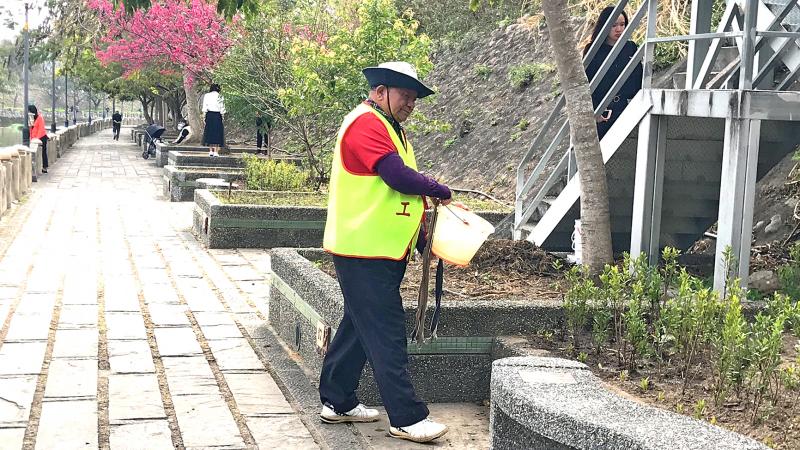 Armed with buckets and bailers, hoes and sickles, 100 elderly residents of Hsinchu County’s Guansi Township Old Bridge Landscape Volunteer Association set off from Ox Pen Riverside Park to carry out a clean-up operation upstream and downstream of Dongan Old Bridge. The volunteers first set about removing weeds and cleaning up litter, and then began planting trees, flowers and plants. To date, the group has planted more than 3,000 specimens. The volunteers did not put their feet up during the Lunar New Year holiday period and took turns to patrol the area and water and tend to the plants and trees. Their strenuous efforts have breathed new life into the picturesque environs of the famous Dongan Old Bridge and Ox Pen River.