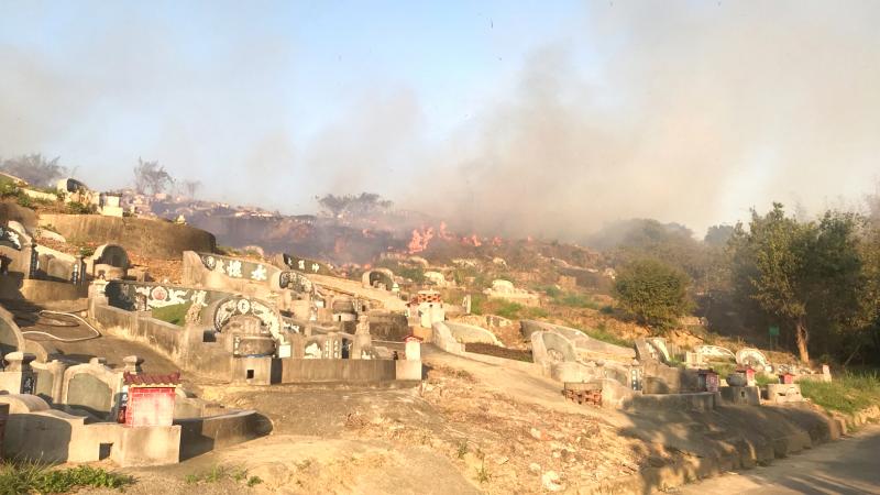 To strengthen disaster prevention around Tomb Sweeping Day this year, the city government’s Bureau of Civil Affairs Bureau and district offices reduced the accumulation of combustible materials ahead of time by weeding public cemeteries and carting refuse away. The Fire Bureau, for its part, drew up practical prevention and rescue measures for cemeteries within its jurisdiction where fires have frequently broken out in the past and where rugged terrain makes rescue operations difficult, and it also promoted fire prevention.