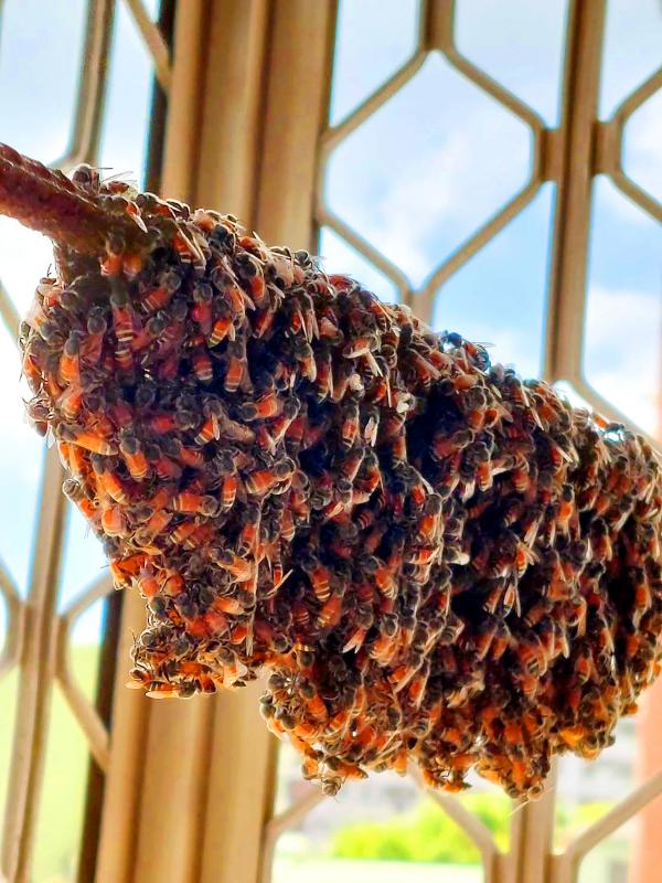 For public officials, the most concerning aspect of the situation is that dwarf honey bees favor establishing their hives on walls and balconies in residential areas and particularly love using the branches of bushes, shrubs and trees. A medium-sized beehive will be about 20cm long and will wrap around or sit upon a branch, pole or similar-shaped cylindrical object. A bee colony will contain anything from several hundred up to over 10,000 bees, presenting a danger in residential areas.