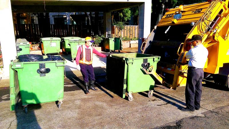 A: 如果是住有大樓管理員的公寓,他們會幫忙倒。你平常就把垃圾放到樓下的垃圾子母車裡,管理員到時候會把它拖出去。