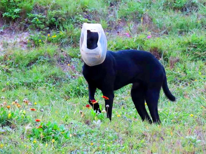 鄰近海岸線及沙灘的第五公墓,早在上個月下旬,就有民眾發現頭戴水桶的浪浪,不少人以為是全國三級警戒下的防疫新裝備。但玩笑歸玩笑,整個水桶罩住浪浪頭部,根本無法覓食及飲水,很容易造成浪浪營養不良死亡,當地水上樂園遊憩業者顏任佑發現不對勁,透過文史工作者顏東星以專業相機拍攝照片,上網對外求援。