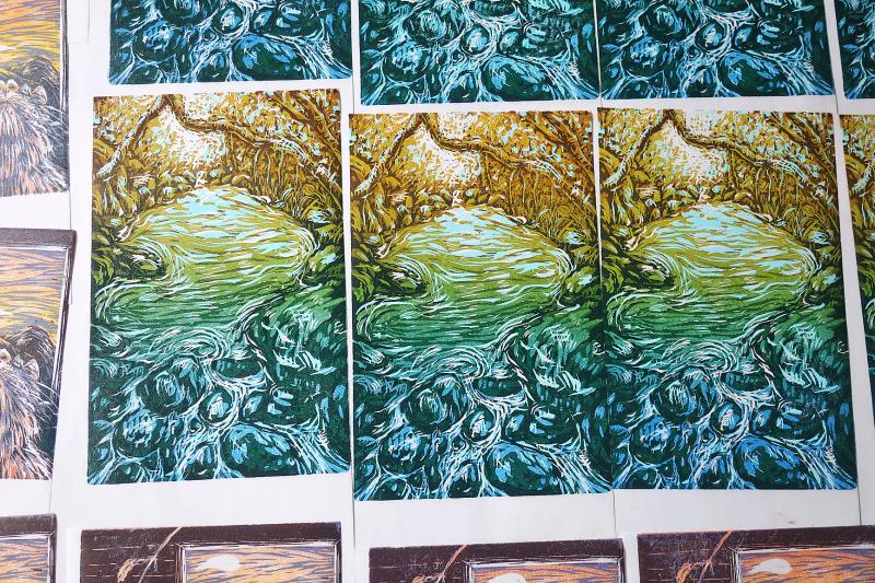 A: So reduction printmaking is an irreversible process: once you’ve carved away a part, it’s gone, and you can’t print it again.