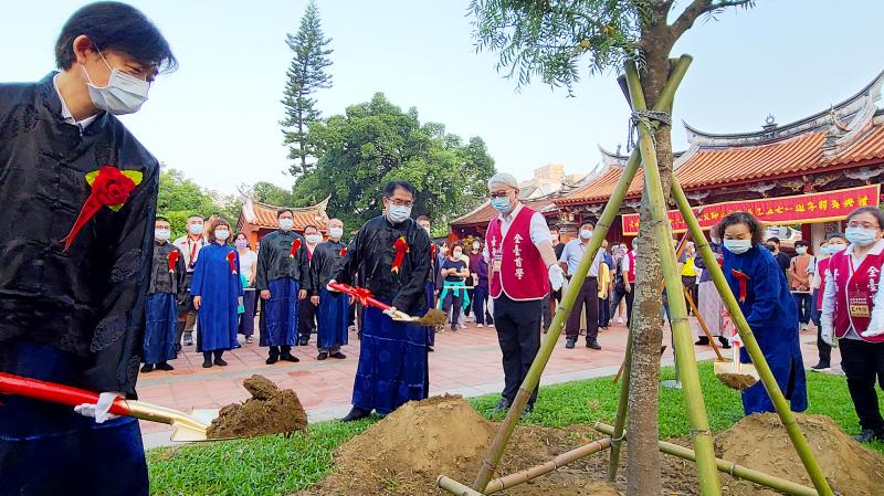 During the early hours of Tuesday morning, Tainan celebrated the 2,571st anniversary of the birth of Confucius by holding an ancient sacrificial ritual at the city’s Confucius Temple, also known as the “first academy of Taiwan.” Many members of the public came to experience the tradition, including a group of exchange students from the Czech Republic. However, due to the COVID-19 pandemic, the event’s organizers canceled the practice of plucking the hairs around the eyes and ears of a sacrificed ox (which is believed to generate wisdom, according to folk tradition), and replaced it with a tree-planting ceremony to commemorate the completion of a restoration project at the temple.