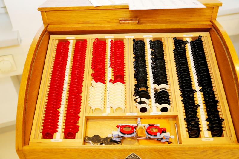 A: 哇,這箱子裡有好多鏡片喔!哈哈這個好好笑,戴這個眼睛會變好大!