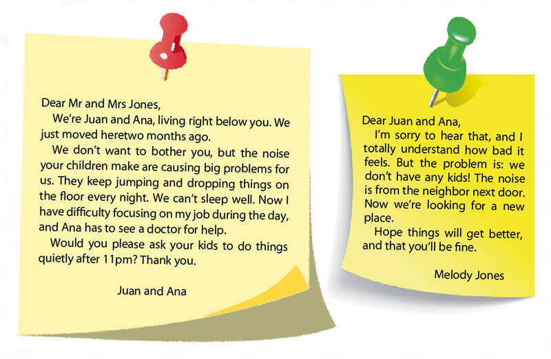 We don’t want to bother you, but the noise your children make are causing big problems for us. They keep jumping and dropping things on the floor every night. We can’t sleep well. Now I have difficulty focusing on my job during the day, and Ana has to see a doctor for help.