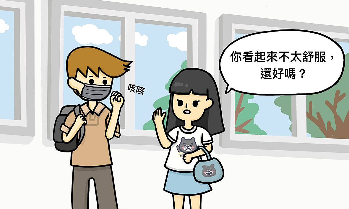 馬克:大概就是流鼻涕、有一點咳嗽,但是沒有發燒。