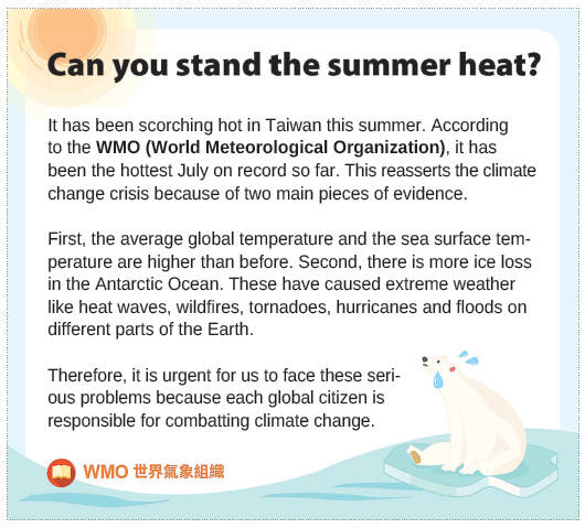 It has been scorching hot in Taiwan this summer. According to the WMO (World Meteorological Organization), it has been the hottest July on record so far. This reasserts the climate change crisis because of two main pieces of evidence.