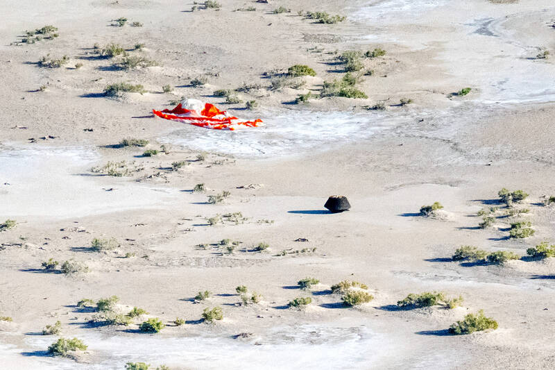 美國太空總署的密封艙裝著從小行星表面挖出的最大土壤樣本,9月24日高速穿過地球大氣層,以降落傘著陸在猶他州沙漠,將給科學家的樣本送達。