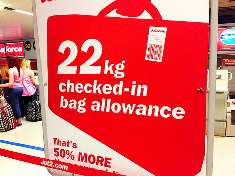 除了體積之外,托運行李還有重量限制,常會用 maximum weight per bag來說明每件行李的最大重量限制。當你發現可能需要拖運超過航空公司規定數量的件數,或是托運行李可能超重或過大時,則可至網站上的excess baggage restrictions「超額行李限制」查找資訊,必定會包含overweight baggage(過重行李)以及oversized baggage(過大行李)等費用規定。
