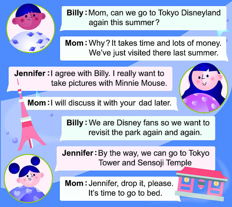 Billy: Mom, can we go to Tokyo Disneyland again this summer?