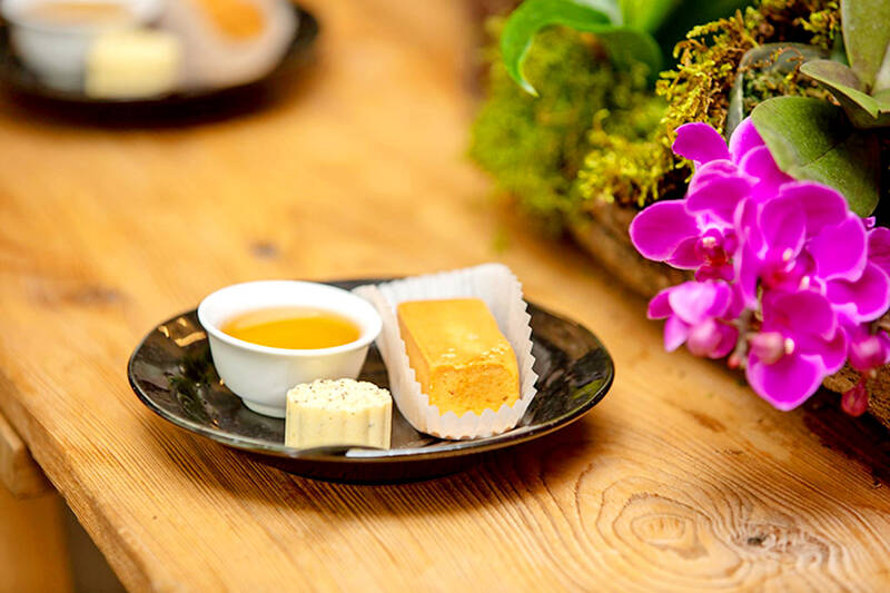 Pineapple cakes have a crust made from low-gluten flour and butter, which is wrapped around condensed pineapple jam. The outer layer is crumbly, while the sweet filling has a fruity aroma. Pineapple cakes are often paired with tea, and many pineapple cake shops offer free samples of their cakes and hot tea for their customers to savor. One good option to pair with these cakes is the world-renowned oolong tea, which is half-fermented, providing an elegant aroma and a clear and bright tea liquor. The sweetness of the pineapple cakes and the fragrance of oolong tea complement each other, creating a wonderful taste.