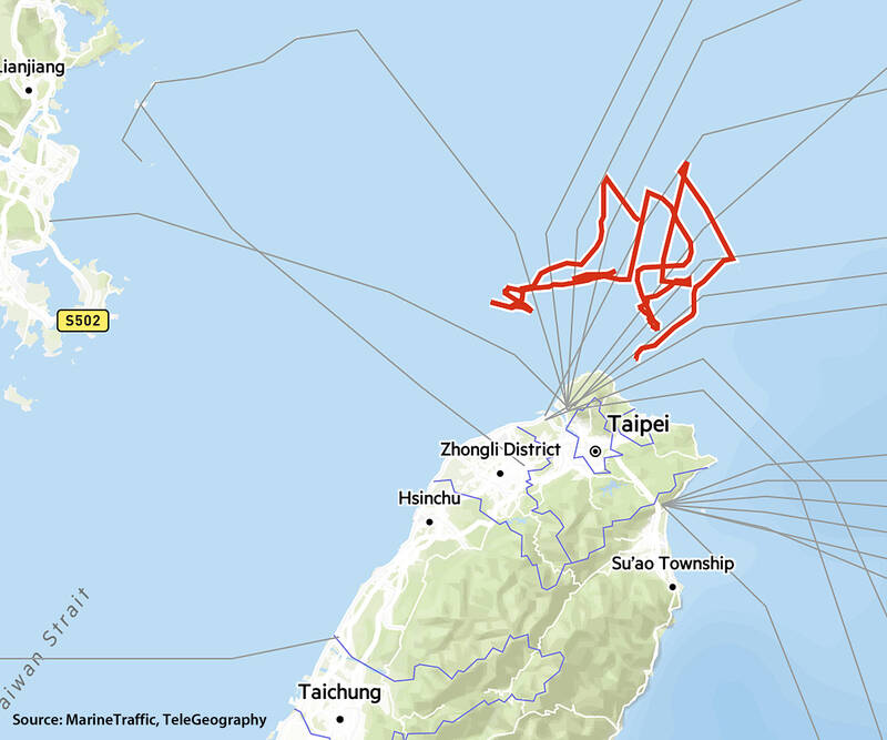 In February last year, two cables linking Taiwan to its outlying Matsu Islands were damaged within days of each other by a Chinese fishing boat and a Chinese cargo vessel, causing slower Internet connections and dropped phone calls, in what one analyst described as a dry run for an “invisible blockade” of Taiwan.
