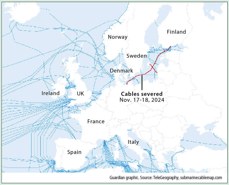 德國和芬蘭去年11月18日在連接兩國的海底電纜被切斷後啟動了調查,警告在與俄羅斯的緊張局勢加劇之際,可能發生「混合戰爭」。