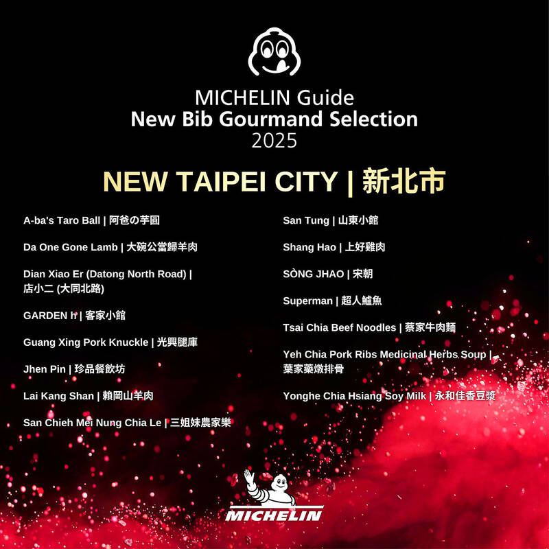 A: Sure, New Taipei and Hsinchu each boast 15 Bib Gourmand eateries now, including some famous establishments such as San Tung restaurant.