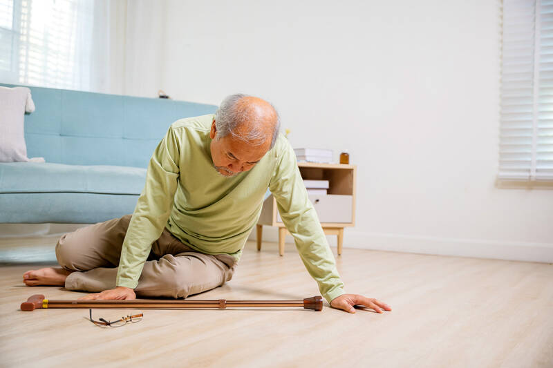 2. 他失去平衡,跌倒在地。