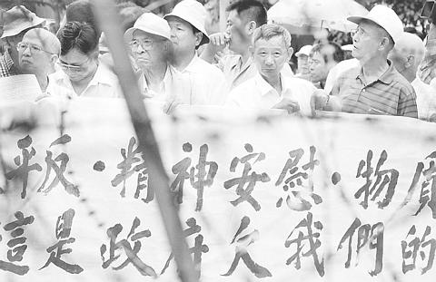 It was the second protest of its kind since the government established a special foundation with NT$10 billion in funds last December to handle the affair. The foundation was set up according to the terms of a law passed in May last year covering the disbursement of compensation for people who were persecuted during the so-called White Terror period.