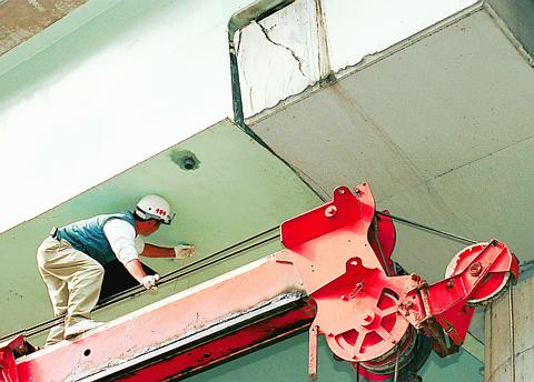 Consultants yesterday were examining the crack and suggesting longer-term measures for fixing the problem, but DORTS' initial assessment was that a pin between the pillar and the track was put in the wrong position when Chunghua Engineering was trying adjust a tilted connection between the pillar and the track.