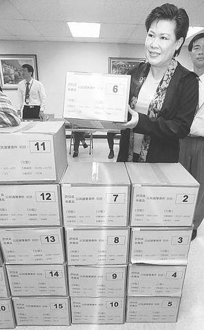 As tomorrow is the deadline for independent presidential candidates to hand over the required 224,000 signatures for the March election, independent presidential candidate Hsu Hsin-liang (許信良) yesterday handed over the first batch of signatures to the Central Election Commission (CEC中選會).