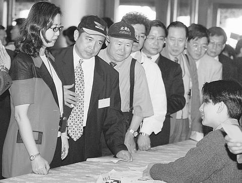 Party members packed the ballroom at the Grand Hotel yesterday for the chairman's election, as well as an open discussion of the party's charter.