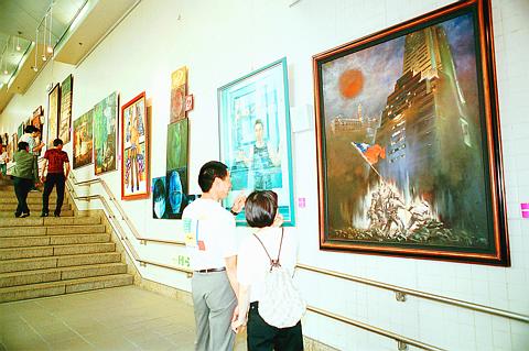 This year's graduating students from the Department of Fine Arts of the National Taiwan Normal University (師範大學, NTNU), along with children from areas hard hit by the 921 earthquake, are adding an abundance of colorful elements to the concrete maze by jointly displaying their works of art at the Water Scene Gallery (水景藝廊) adjacent to the station.