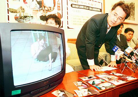 While showing a videotape to the media, Shyh, who is himself physically disabled, said patients, often handcuffed or wearing leg irons, are driven out of their rooms in the morning to enable janitors to clean their rooms.