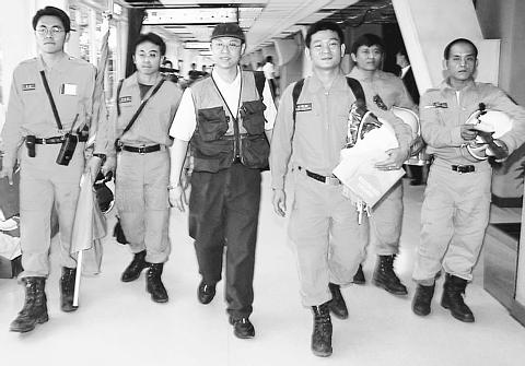 The seven-person team consisting of six emergency aid specialists from the Taipei County Government Fire Department and one doctor is the first ever from Taiwan to conduct search and rescue work overseas.