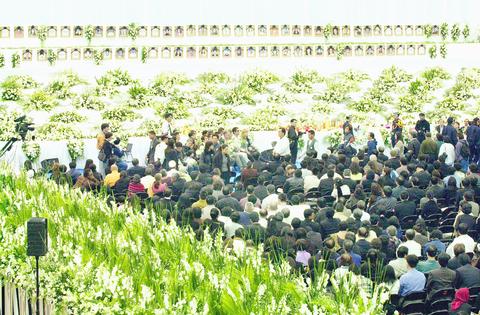 Hundreds of kin of deceased crew members and passengers of the ill-fated flight that crashed at Chiang Kai-shek International Airport, as a typhoon was lashing the island, paid their respects at the public service.