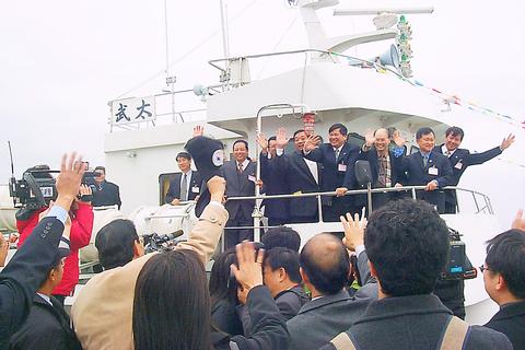 The businessmen, whose voyage was approved by both Taiwan's MAC and Fujian Province's Taiwan Affairs Office (TAO), arrived in Xiamen at around 3pm yesterday. Xiamen's TAO and its city government held a dinner banquet to welcome the businessmen, who included Huang Tieh-jung (