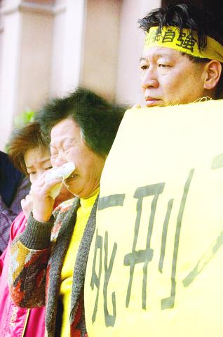 In front of the Ministry of Justice yesterday, Hsu's mother Chen Hsiu-chin (